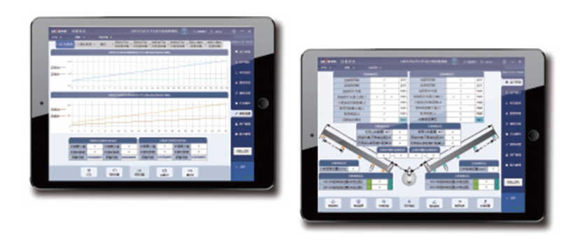 运行界面直观展示设备张力状态、正极纠偏、负极纠偏、隔膜纠偏情况,可快速进行卷绕控制。用户可在系统中对设备运行参数、工艺参数等进行设置,由PLC执行生产操作。